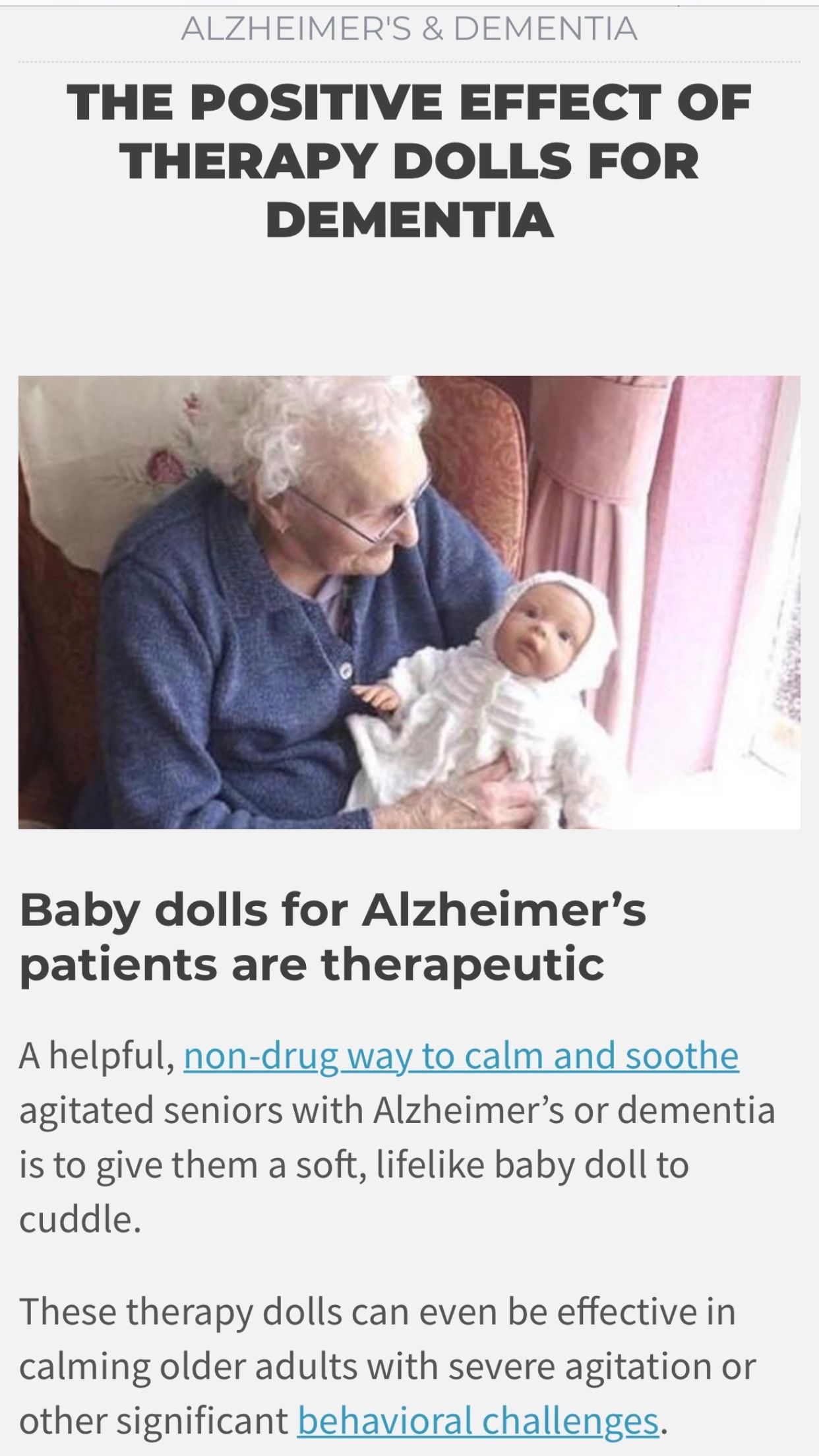 Relieve A worried mind, sleep more peacefully and reduce stress. There are many rewards achieved by focusing energy toward a lifelike baby. Dolls can be meditative for many. Please see my listed article on the health benefits from owning a reborn doll.